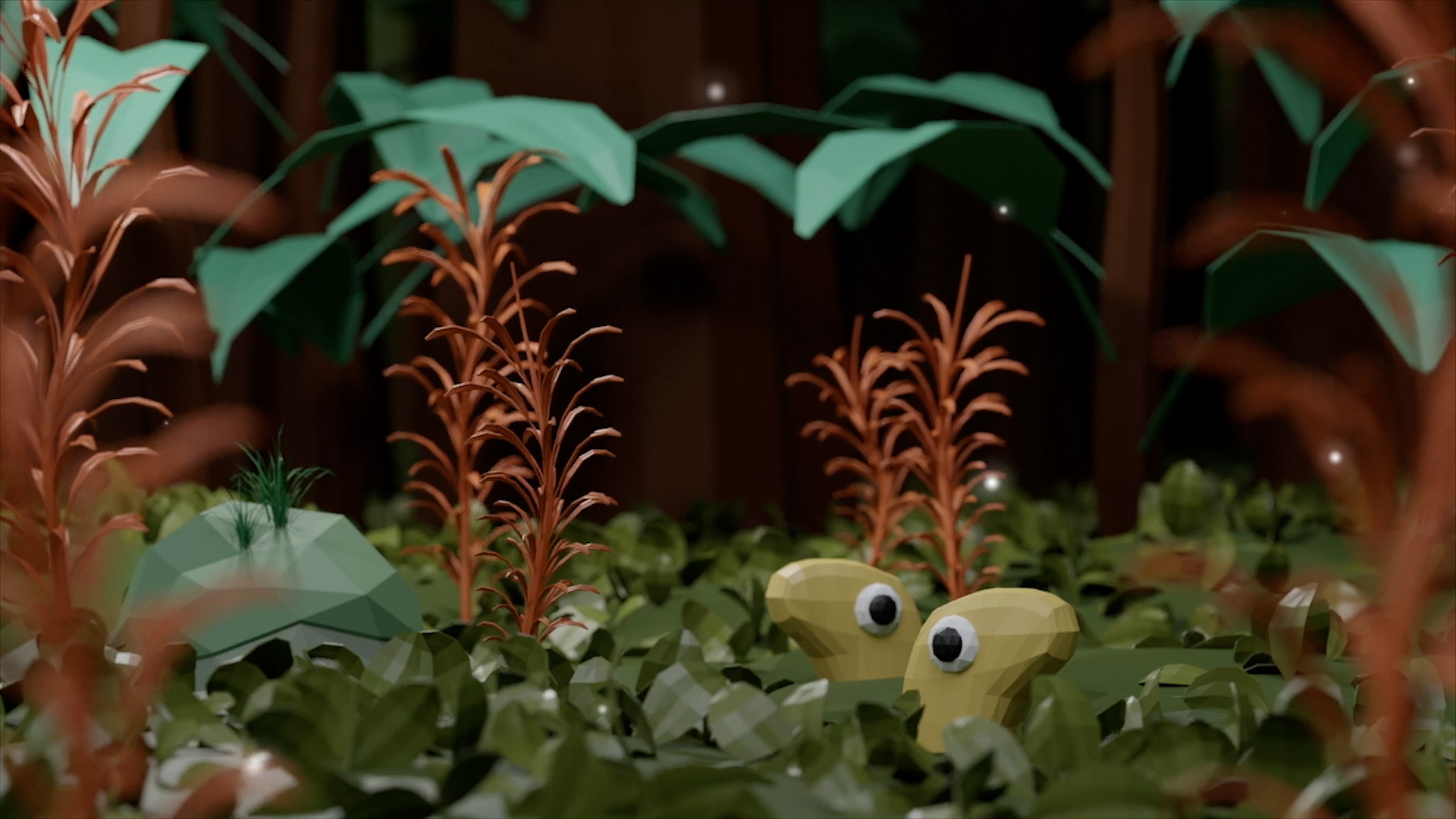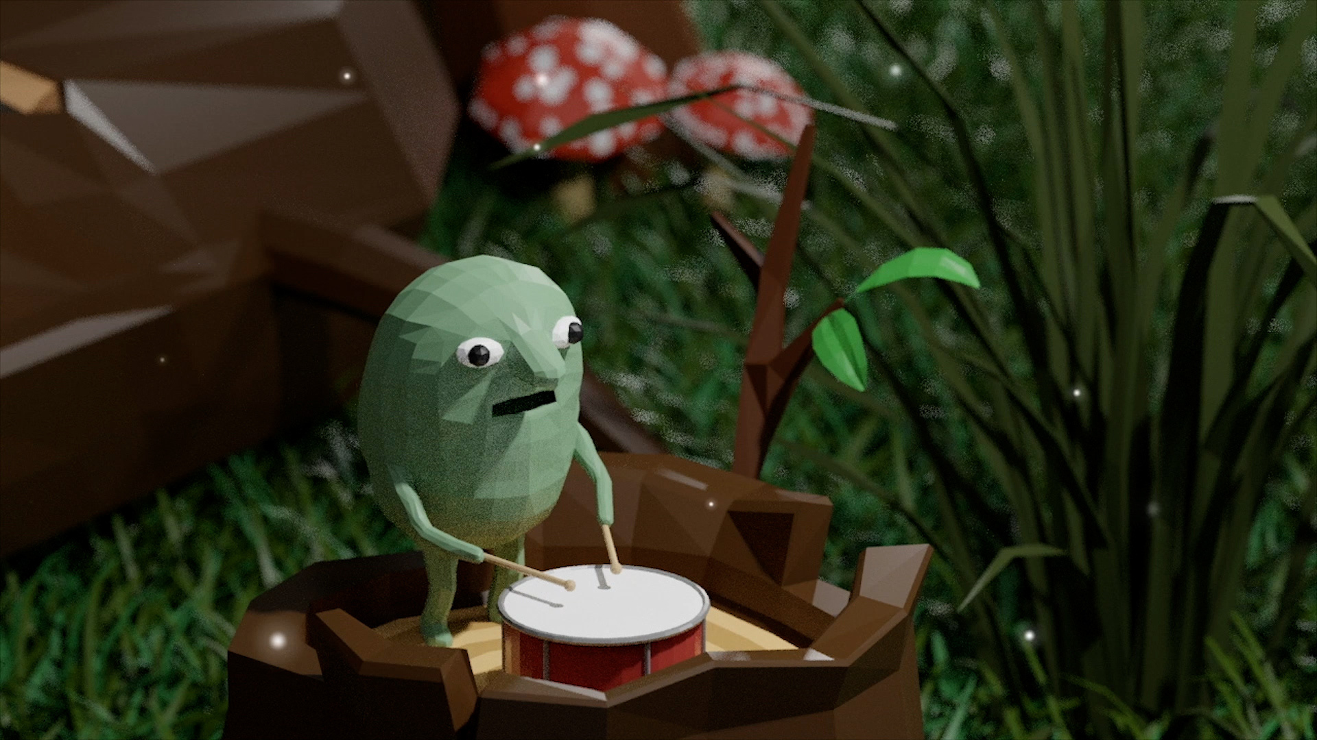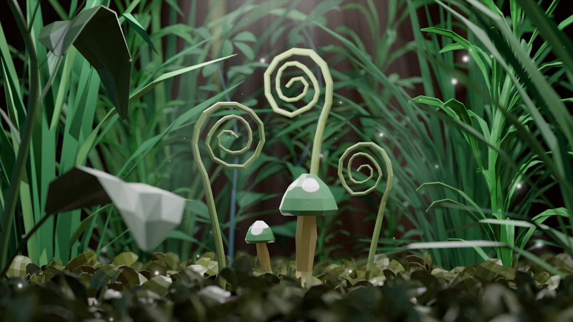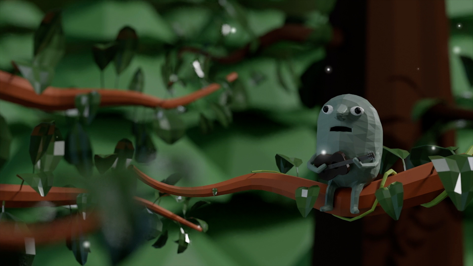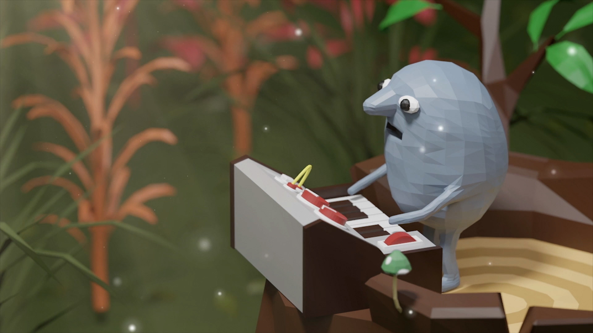 映像はBlenderを用いて制作し、ローポリゴンの可愛らしいビジュアルで表現しています。シンプルながら温かみのあるデザインにすることで、見る人が物語の世界に優しく包み込まれるような雰囲気を目指しました。光や動きの細かな演出にもこだわり、音楽が響くたびに森が目覚めていく様子を丁寧に描いています。