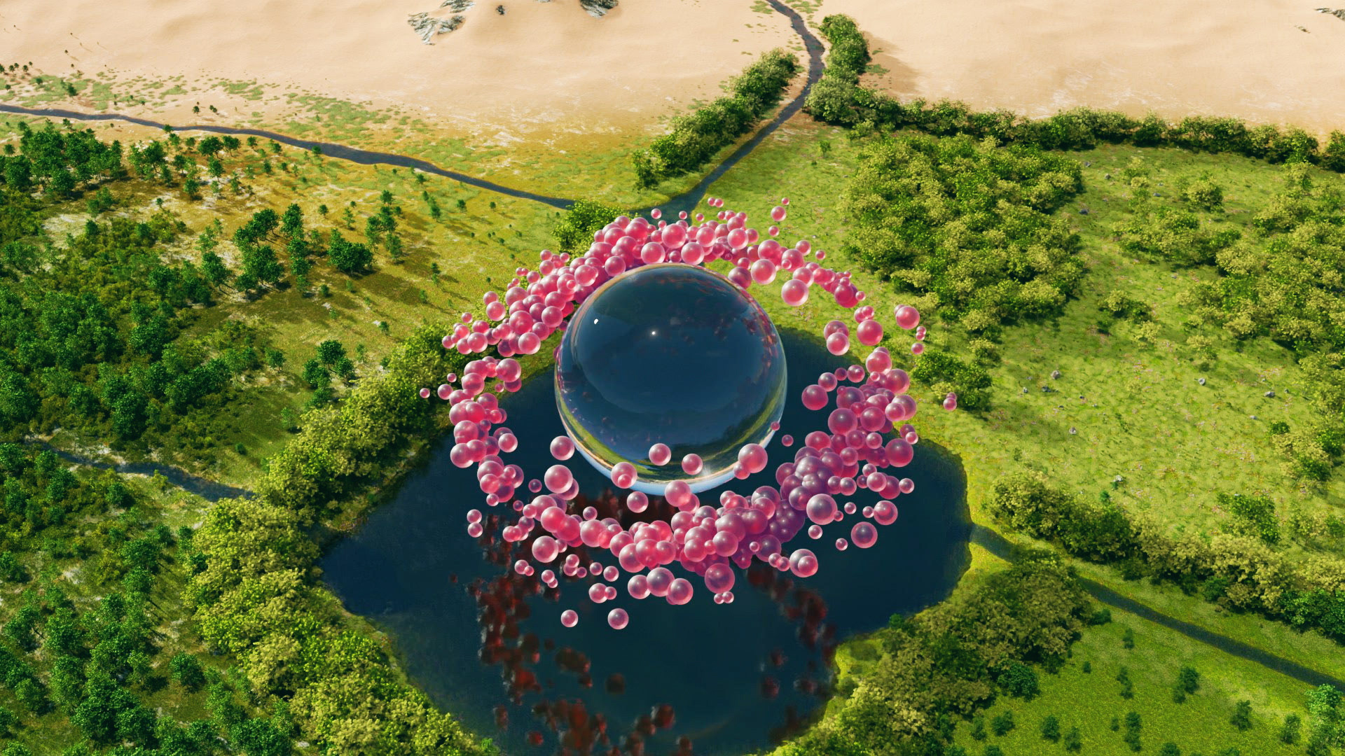 『Sphere of Life』 は、水から生まれた球体が変化を重ね、そのエネルギーがやがて木を育む物語を描いた映像作品です。球体は一定の形を保ちながらも有機的に変容し続け、その過程の積み重ねが新たな生命の誕生へとつながります。生命は姿を変えながら受け継がれ、新たな存在を生み出していく——その普遍的な営みを象徴的に表現しました。